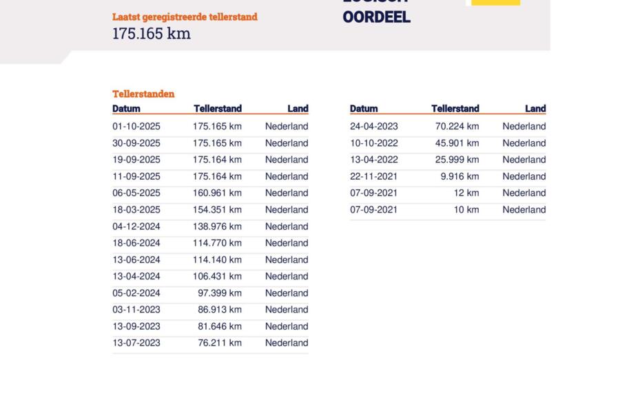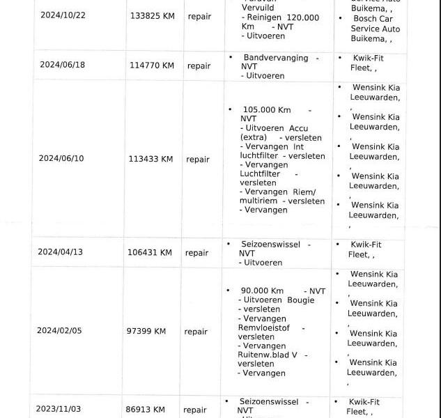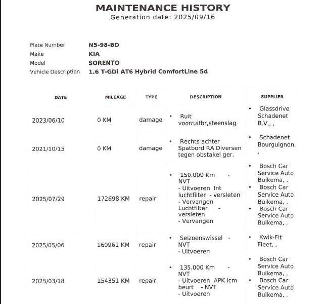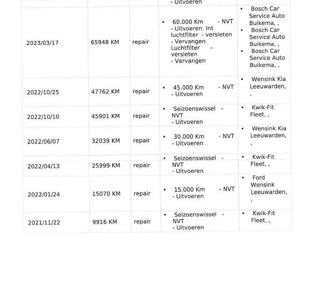 Onderhoudshistorie bekend